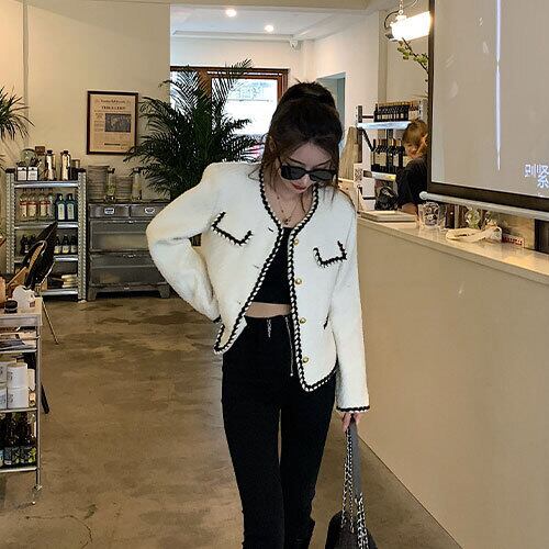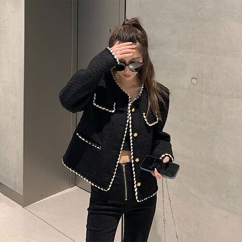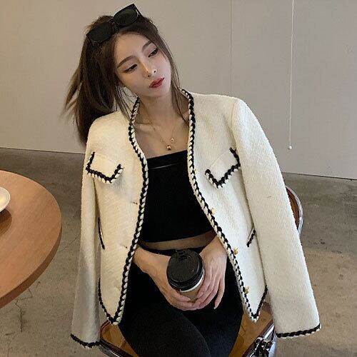 ノーカラー 春 スプリング ジャケット バイカラー レトロ ショート 韓国系 2色 RB-R4-02-BY-SA-0058