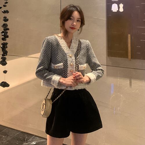 ノーカラー 春 スプリング ジャケットVネック 格子柄 胸ポケット フォーマル ジャケット ノーカラー RB-R4-02-BY-SA-0063