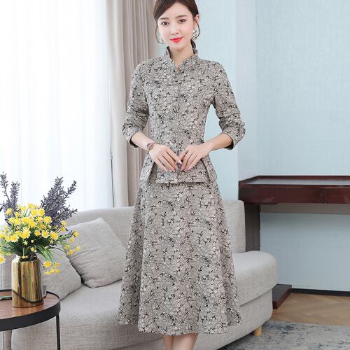 ノーカラー 春 スプリング セットアップ 花柄プリント ツーピース スカートセット レトロ エレガント RB-R4-02-BY-SA-0083