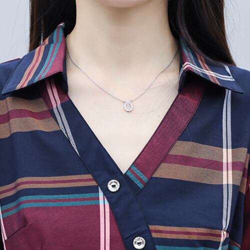 ノーカラー 春 スプリング ワンピース Aライン Vネック タータンチェック ワンピース ドレス レトロ RB-R4-02-BY-SA-0084