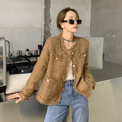 ノーカラー 春 スプリング ジャケット 長袖 ツイード 3カラー ジャケット エレガント R4-02-BY-SA-0090