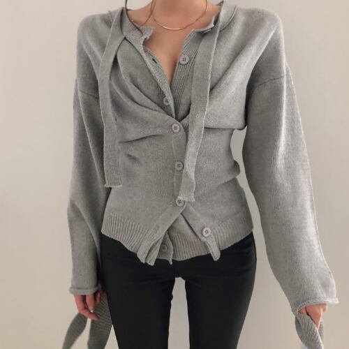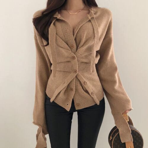 ノーカラー 春 スプリング 全3色 レイヤード トップス ニット ボタン RB-R4-02-BY-SA-0100