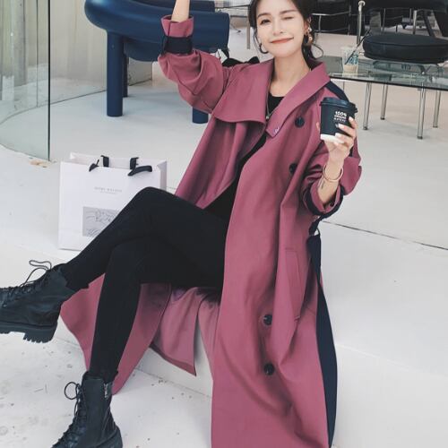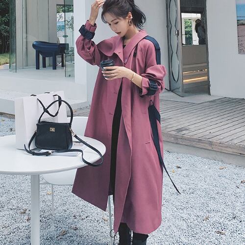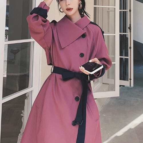 トレンチコート 春 スプリングコート バイカラー ダブルパックル ベルト付 ロング丈 おしゃれ RB-R4-03-BY-SA-0010