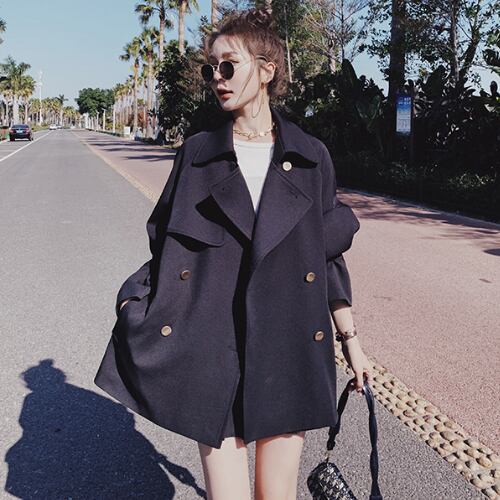 トレンチコート 春 スプリング アウター コート バックル ショート丈 ブラック 韓国系 RB-R4-03-BY-SA-0012