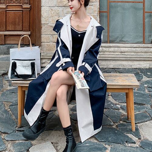 トレンチコート 春 スプリング スプリングコート フード バイカラー カジュアル レディース RB-R4-03-BY-SA-0018