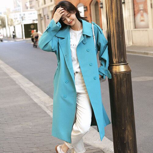 トレンチコート 春 スプリング レディース ダブル ブルー ホワイト ブラック RB-R4-03-BY-SA-0023