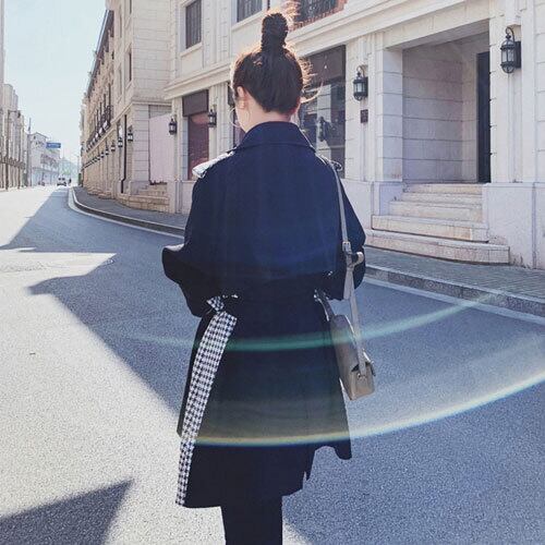 トレンチコート 春 スプリング レディース ブロッキング 千鳥格子 人気 黒 RB-R4-03-BY-SA-0042
