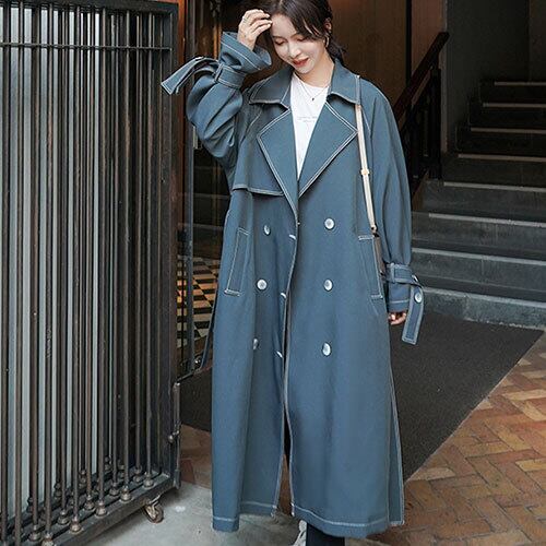 トレンチコート 春 スプリング トレンチコート ネイビー フェミニン ステッチ 韓国 RB-R4-03-BY-SA-0050