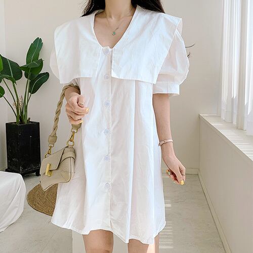 夏 サマー 長袖 ビッグカラー セーラー 襟付き ロング ブラウス ワンピース RB-R4-03-BY-SA-0054