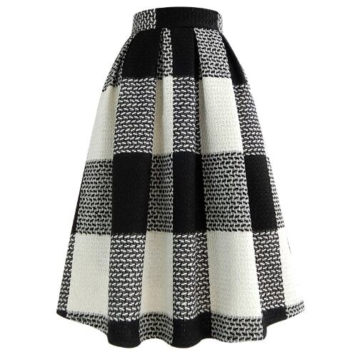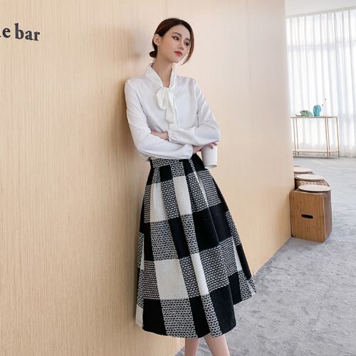 春 スプリング モノトーン チェック フレア ミドル丈 ミディ スカート 上品 RB-R4-03-BY-SA-0080