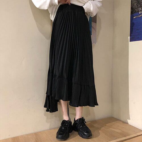 春 スプリング アシンメトリー ランダム フレア ロング プリーツ スカートRB-R4-03-BY-SA-0070