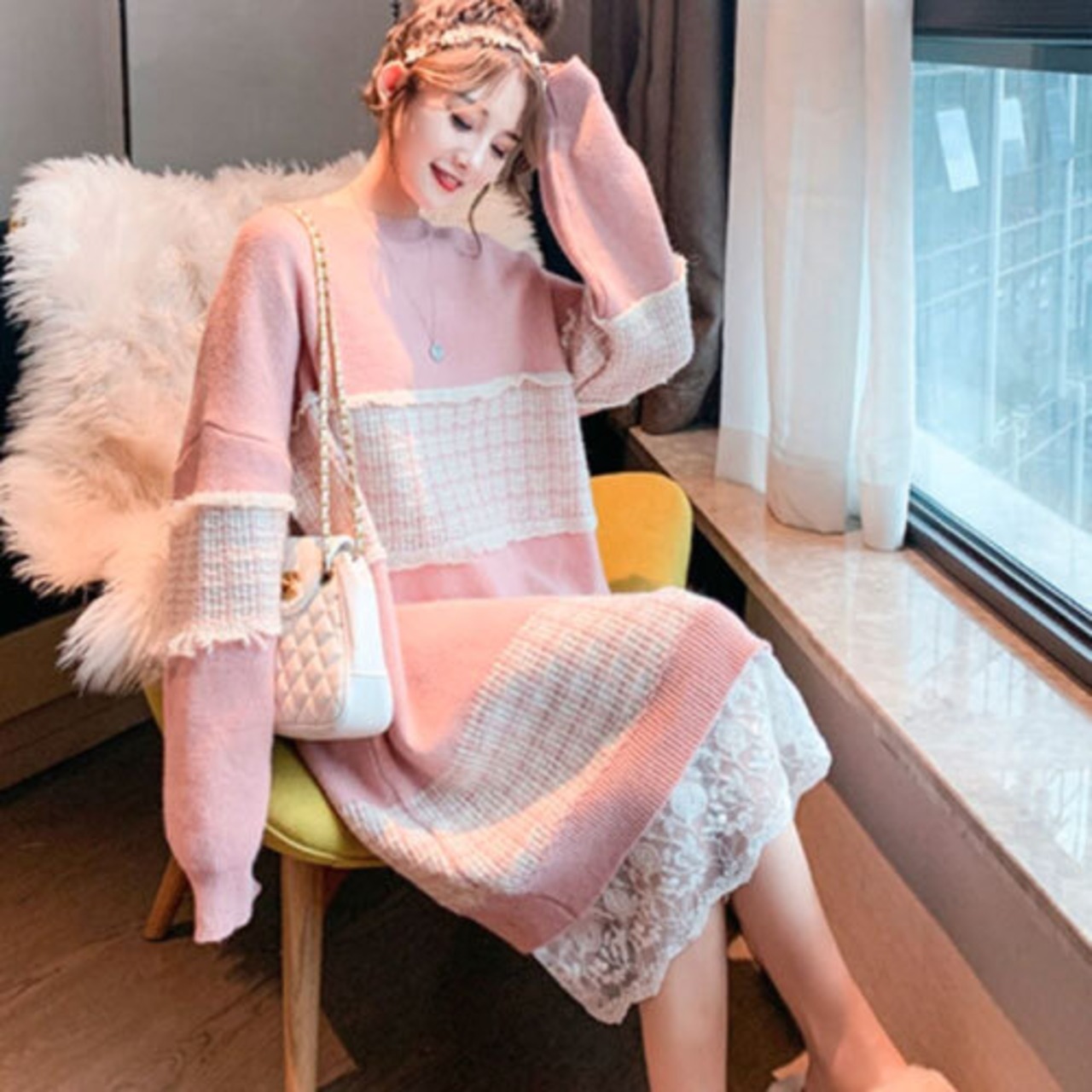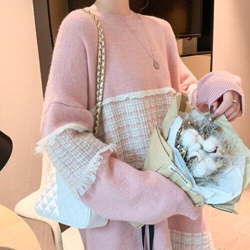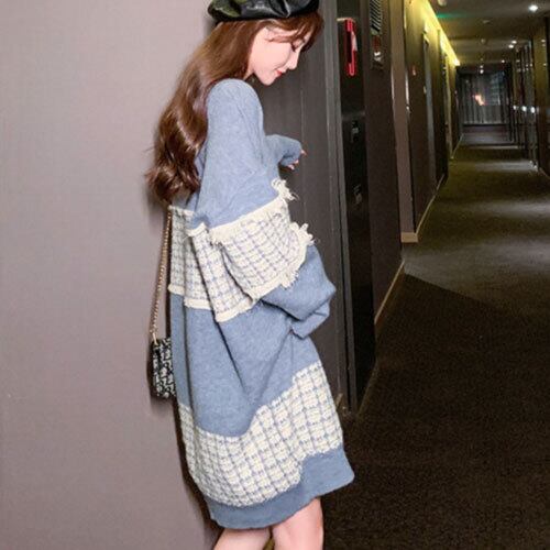 春 スプリング 長袖 ゆったり ルーズ 切替え ツイード ラフ ワンピース RB-R4-03-BY-SA-0100