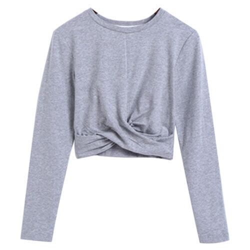 夏 サマー ラウンドネック ツイスト ショート丈 半袖 シンプル Tシャツ RB-R4-03-BY-SA-0105