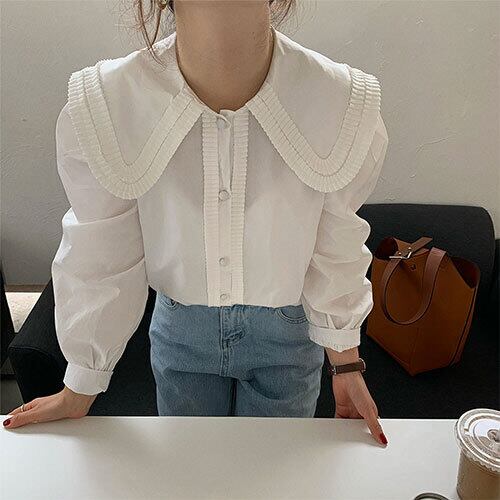 春 スプリング ビッグカラーフリル パフスリーブ ブラウス 全2色 RB-R4-03-BY-SA-0111