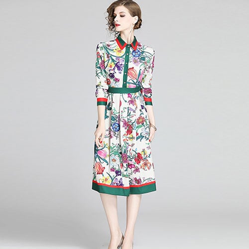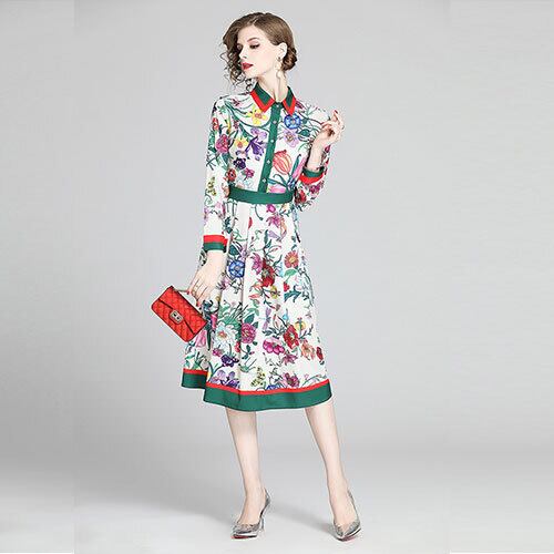 春 スプリング 花柄 ボタニカル 襟付き クラシック ロング ワンピース M~2XL RB-R4-03-BY-SA-0116