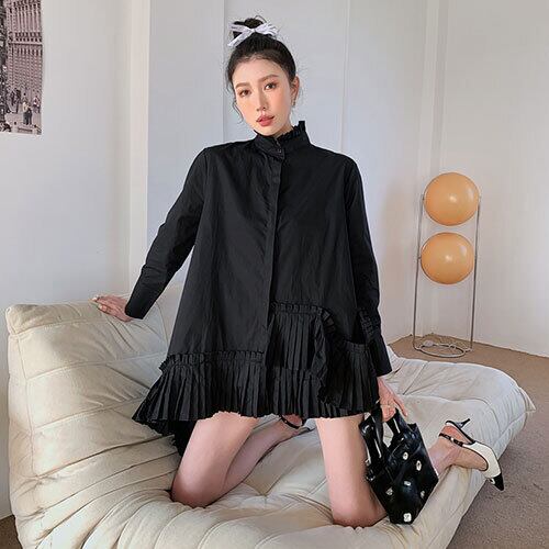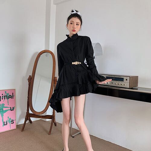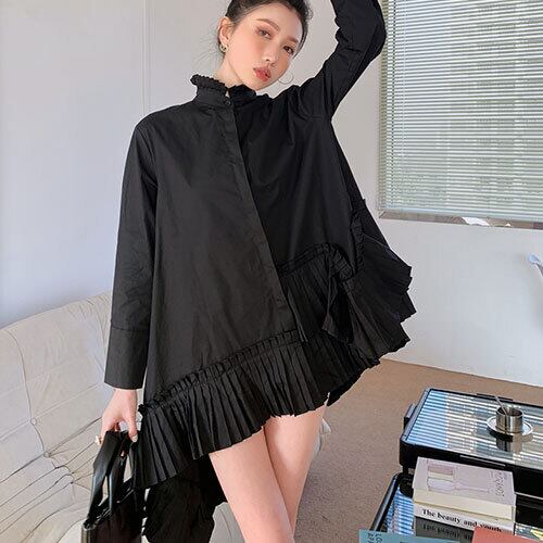 春 スプリング アシンメトリー フリル ハイネック シャツ ワンピース RB-R4-03-BY-SA-0117