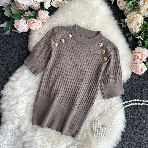 春 スプリング デザイン リブ 半袖 サマーニット クルーネックトップス RB-R4-03-BY-SA-0119