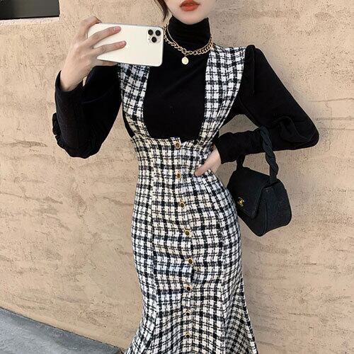 春 スプリング チェック柄 マーメイドスカート ワンピース 全2色 RB-R4-03-BY-SA-0121