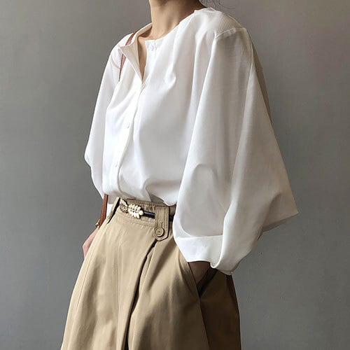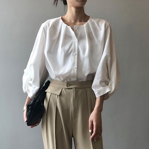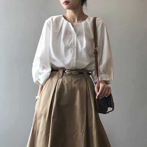 夏 サマー シャツ ランタンスリーブ シンプル カジュアル ラウンドネック RB-R4-05-BY-SA-006