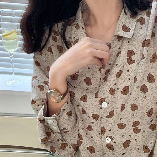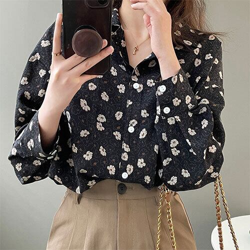 夏 サマー シャツ ブラウス シフォン 花柄 フラワー 長袖 しわになりにくい オープンカラー エレガント RB-R4-05-BY-SA-018