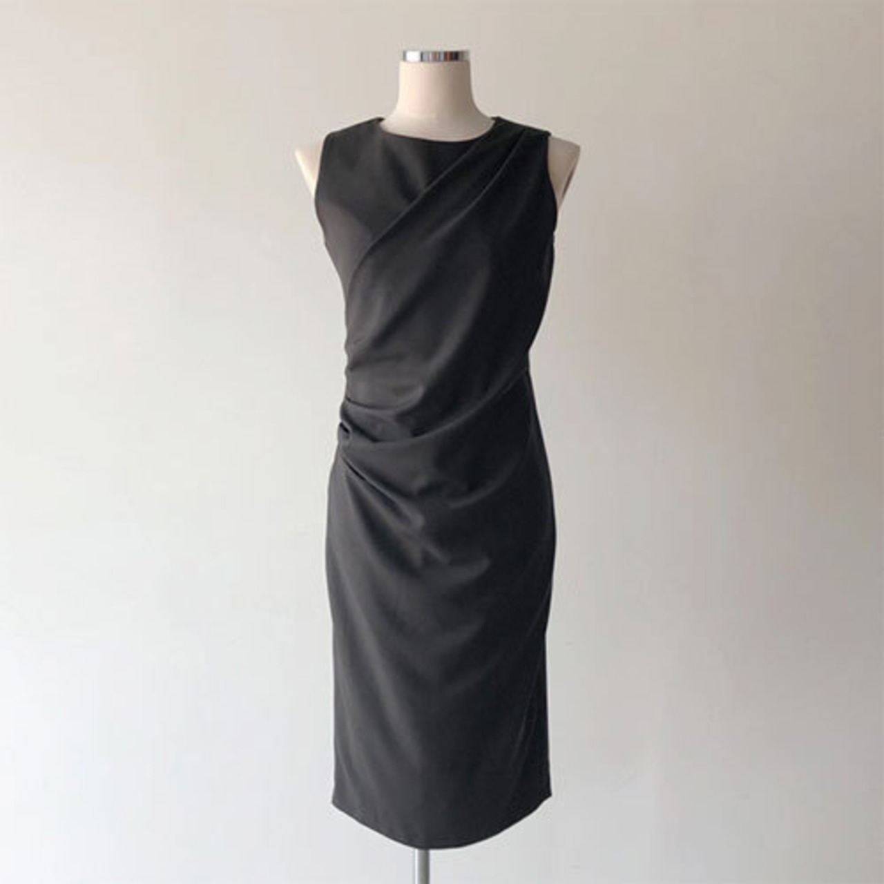 夏 サマー ワンピース ノースリーブ タイト ドレープ 膝丈 オフィススタイル シンプル エレガント RB-R4-05-BY-SA-021