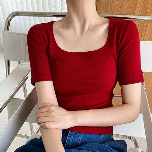 夏 サマー Tシャツ トップス スクエアネック ハイウエスト ショート スリムフィット スリミング 鎖骨みせ RB-R4-05-BY-SA-028