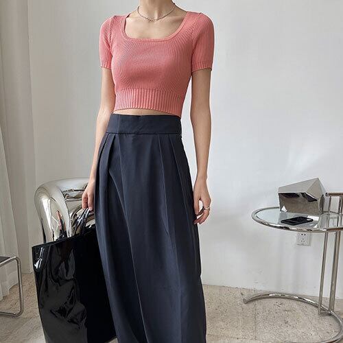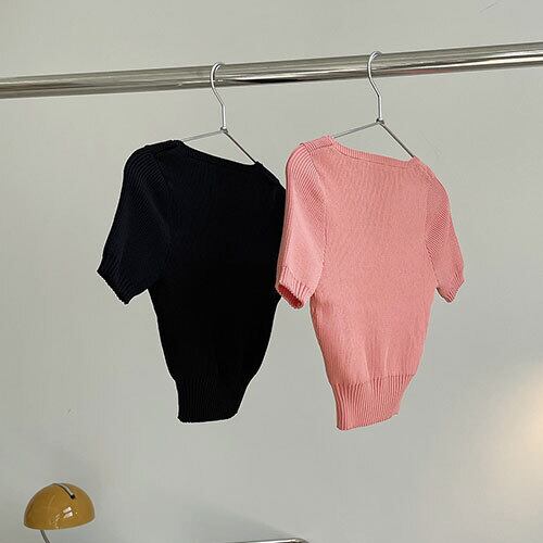 夏 サマー Tシャツ スクエアネック 半袖 ショート ニット ファッショナブル トップス RB-R4-05-BY-SA-036