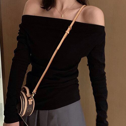 夏 サマー オフショルダー ロングスリーブ きれいめ シャツ トップス ストラップレス ショルダーカラー セクシー ワードカラー RB-R4-05-BY-SA-042
