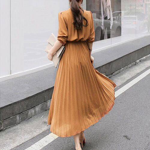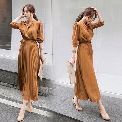 夏 サマー ワンピース ノーカラー シフォン シャツ プリーツ 切替 フレア セミハイカラー シングル ブレスト ウエストリボン RB-R4-05-BY-SA-049