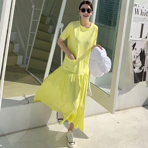 夏 サマー ワンピース カットソー 切替 フレア クルーネック RB-R4-05-BY-SA-069