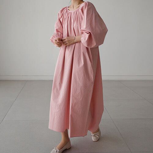 夏 サマー ワンピース ボリュームスリーブ オーバーシルエット ウエストリボン クルーネック ロング丈 RB-R4-05-BY-SA-075