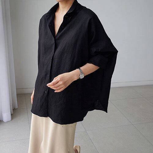 夏 サマー シャツ ブラウス リネン オーバーシルエット ボリュームスリーブ フロントボタン RB-R4-05-BY-SA-080