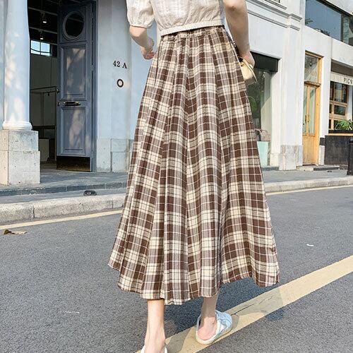 夏 サマー カジュアル ウエスト 楽ちん チェック ロング スカート RB-R4-05-BY-SA-103