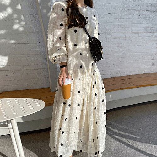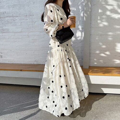 夏 サマー 上品 キレイ ドット Aライン ロングワンピース RB-R4-05-BY-SA-120