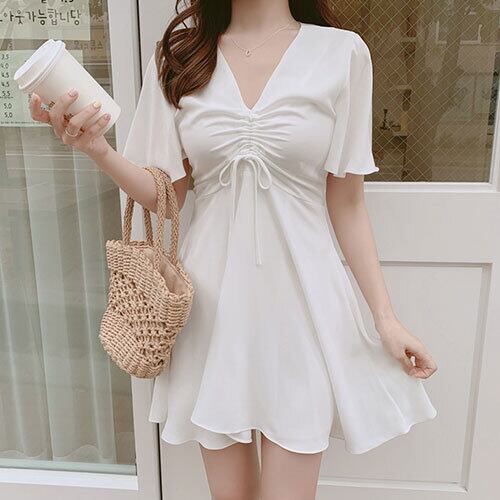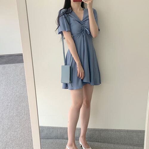 夏 サマー シフォンドレス スカート Vネック 無地 半袖 RB-R4-05-BY-SA-139
