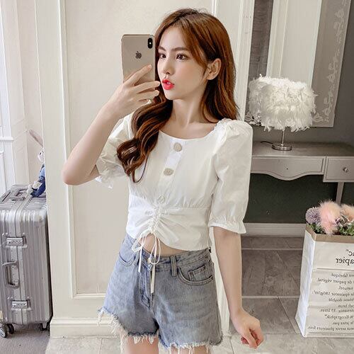 夏 サマー シフォンシャツ パフスリーブ 無地 半袖 ミニ丈 RB-R4-05-BY-SA-146