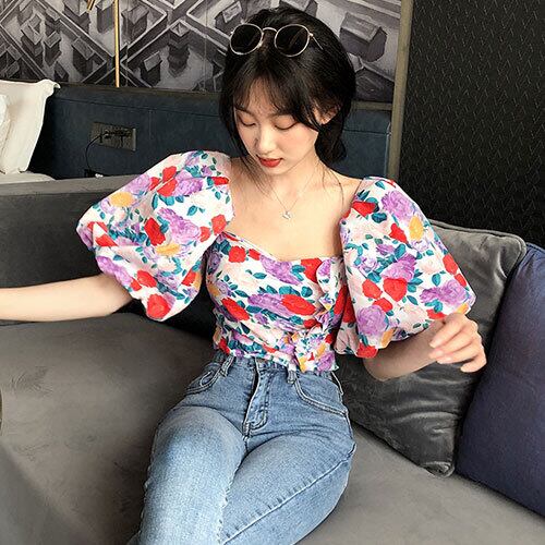 夏 サマー フローラル パフスリーブ スクエアネック ミニ丈 半袖 RB-R4-05-BY-SA-149