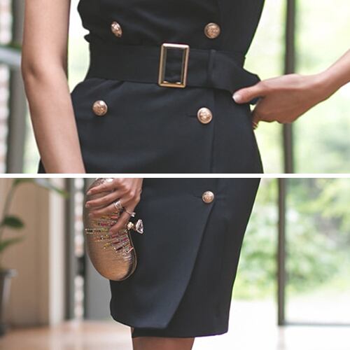 夏 サマー ワンピース ノースリ ボタン ベルト ラップ ドレス ジャケット RB-R4-06-BY-SA-003