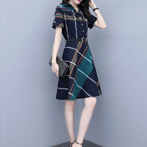 夏 サマー 2色 シャツ ワンピース ドレス チェック Aライン 大人カジュアル RB-R4-06-BY-SA-010