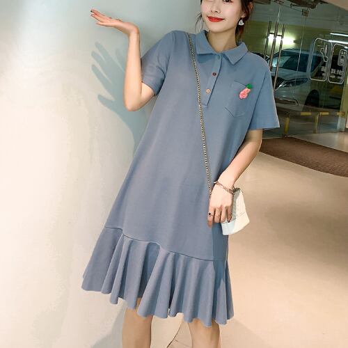 夏 サマー 5色 ポロカラー ワンピース ドレス ティアード ルーズフィット RB-R4-06-BY-SA-013
