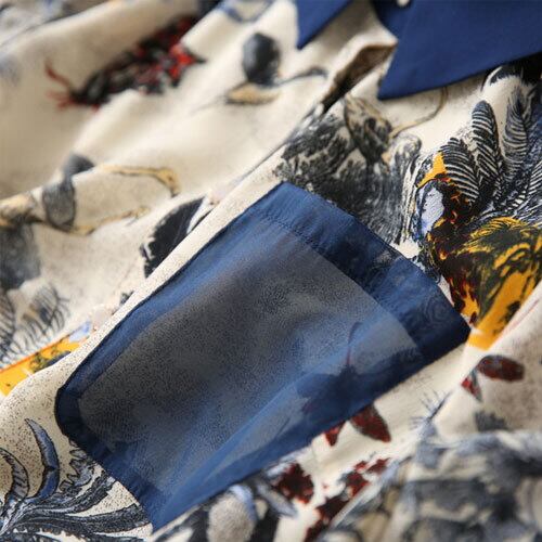 夏 サマー 総柄 シフォン シャツ ワンピ ヤシの木 Aライン 大人カジュアル RB-R4-06-BY-SA-017