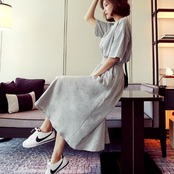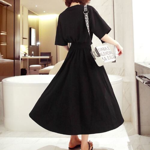 夏 サマー 2色 ワンピース ドレス ラウンドカラー 切替 スウェット Aライン RB-R4-06-BY-SA-027
