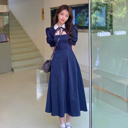夏 サマー ワンピース ドレス スクエア 肌見せ デザイン Aライン レトロ感 RB-R4-06-BY-SA-028
