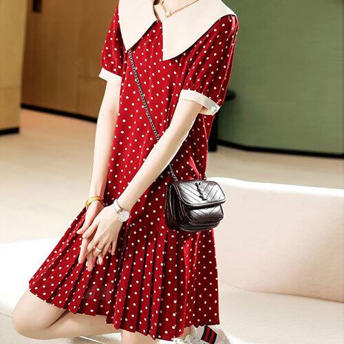 夏 サマー ワンピース ドット柄 プリーツ ひざ丈 可愛い RB-R4-07-TA-SA-002