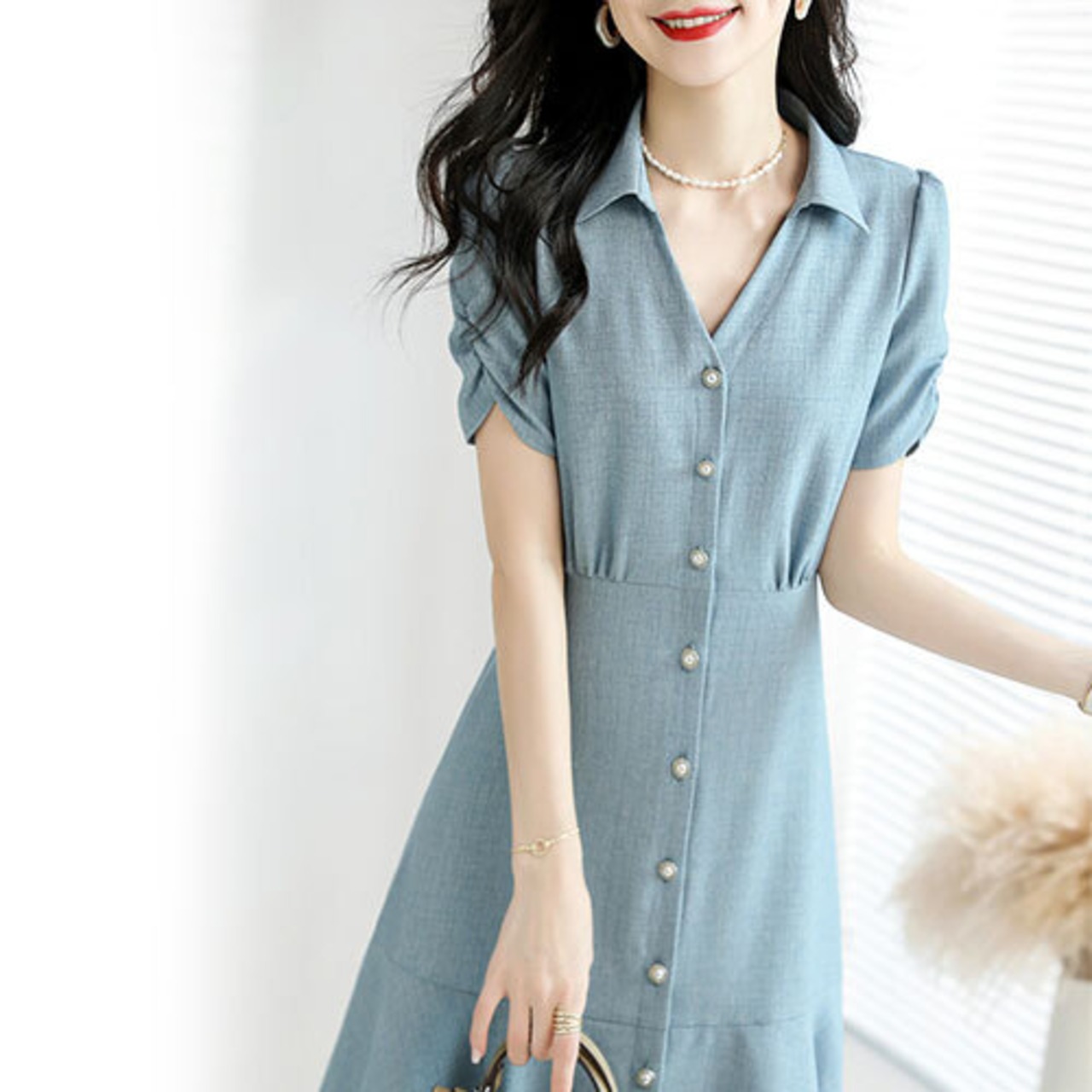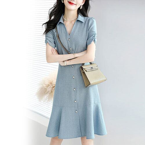 夏 サマー ワンピース シャツワンピ A字スカート 膝丈 綺麗め フォーマル RB-R4-07-TA-SA-011
