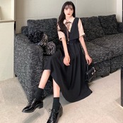 ワンピース レディース 夏 秋 半袖 長袖 きれいめ ロング 可愛い かわいい 膝丈 ひざ丈 20代 30代 40代 マキシ タイト レトロ モダン 白 黒 RB-R4-08-TA-SA-006