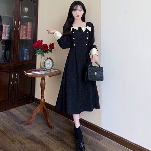 ワンピース レディース 夏 秋 半袖 長袖 きれいめ ロング 可愛い かわいい 膝丈 ひざ丈 20代 30代 40代 マキシ タイト レトロ モダン 白 黒 RB-R4-09-TA-SA-038