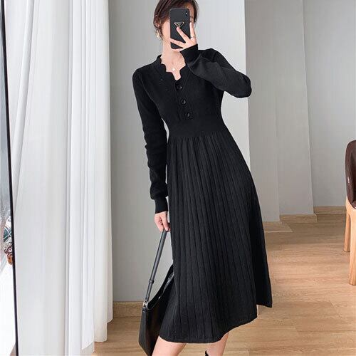 韓国風レディース服 お出かけ エレガント オシャレ ニットワンピース コート ジャケット アウター ワンピース レディース 秋 冬 半袖 長袖 きれいめ ロング 可愛い かわいい 膝丈 ひざ丈 20代 30代 40代 マキシ タイト レトロ モダン 白 黒 RB-R4-11-NS-SA-083