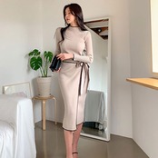 ニット ワンピース ミディアム丈ワンピース ボトルネック リボン 蝶結び 韓国ファッション 秋 冬 コート ジャケット アウター ワンピース レディース 秋 冬 半袖 長袖 きれいめ ロング 可愛い かわいい 膝丈 ひざ丈 20代 30代 40代 マキシ タイト レトロ モダン 白 黒 RB-R4-12-NS-SA-005