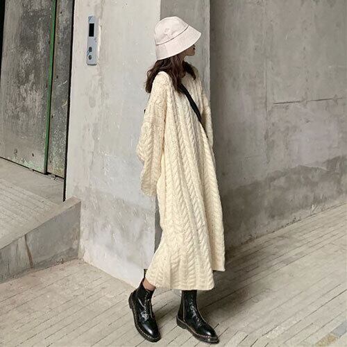 ルース ツイスト ニッ 長袖 ワンピース 女 新しいデザイン 韓国風 コート ジャケット アウター ワンピース レディース 秋 冬 半袖 長袖 きれいめ ロング 可愛い かわいい 膝丈 ひざ丈 20代 30代 40代 マキシ タイト レトロ モダン 白 黒 RB-R4-12-NS-SA-036